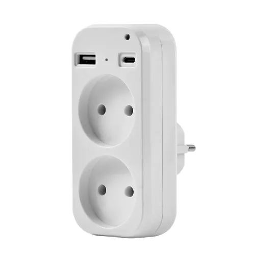 Търсите надежден и изключително дискретен начин да наблюдавате дома или офиса си, без никой да подозира? Този продукт е идеалното решение, тъй като съчетава две основни функции в едно устройство. На пръв поглед, това е напълно обикновен и функционален стенен разклонител, който се включва директно в контакта. Разполага с два стандартни 220V контакта и два USB порта – един USB Type-A и един по-нов USB Type-C, което го прави полезен аксесоар за всекидневна употреба.
